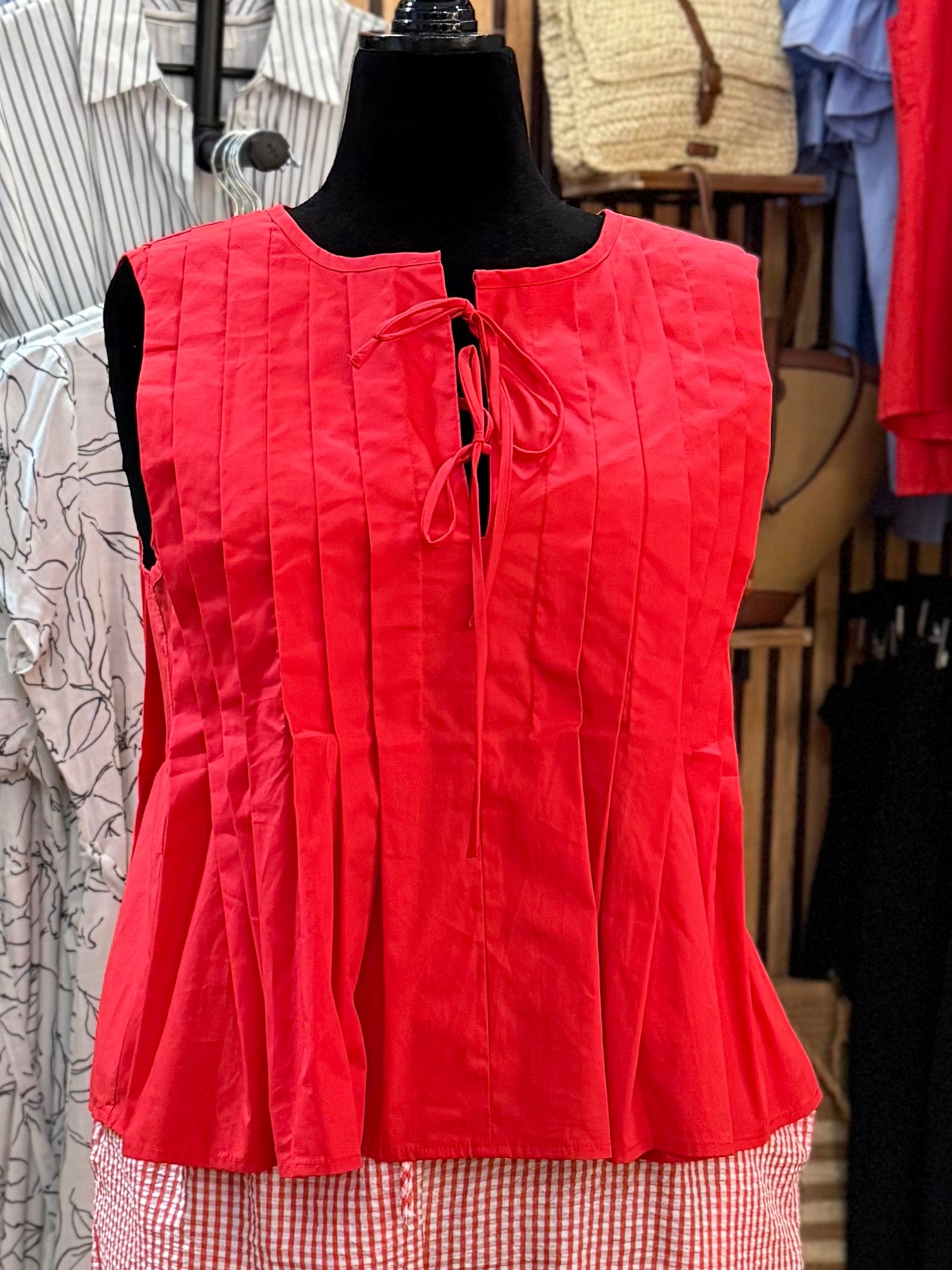 Elevate your wardrobe with this solid poplin sleeveless top, featuring elegant pleats and a chic tie-front detail. Its lightweight fabric ensures comfort and breathability, making it perfect for warm days or layering under jackets. The tailored fit highlights a modern silhouette, effortlessly combining style and versatility for any occasion.